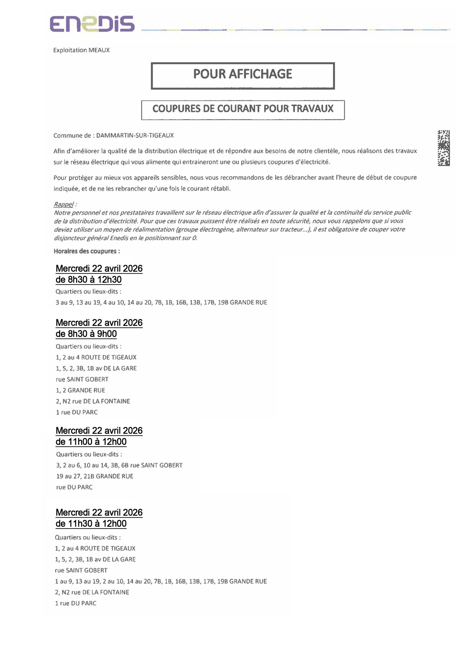 Coupures de courant pour travaux